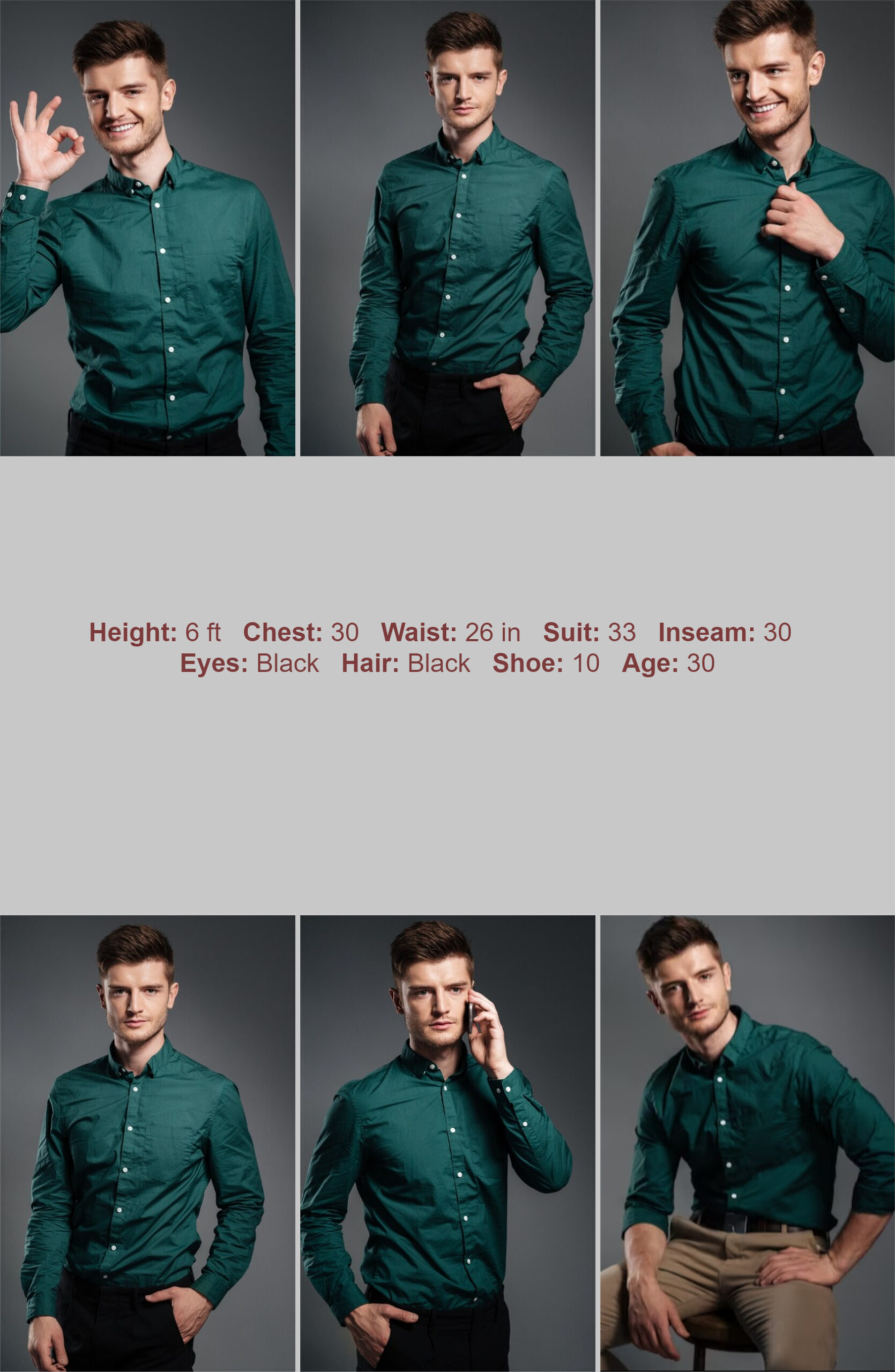 With space for up to six high-resolution images, male models have the opportunity to display their range and versatility. Whether it’s showcasing different looks, poses, or styles, this template allows models to captivate viewers with a diverse portfolio that highlights their unique appeal.