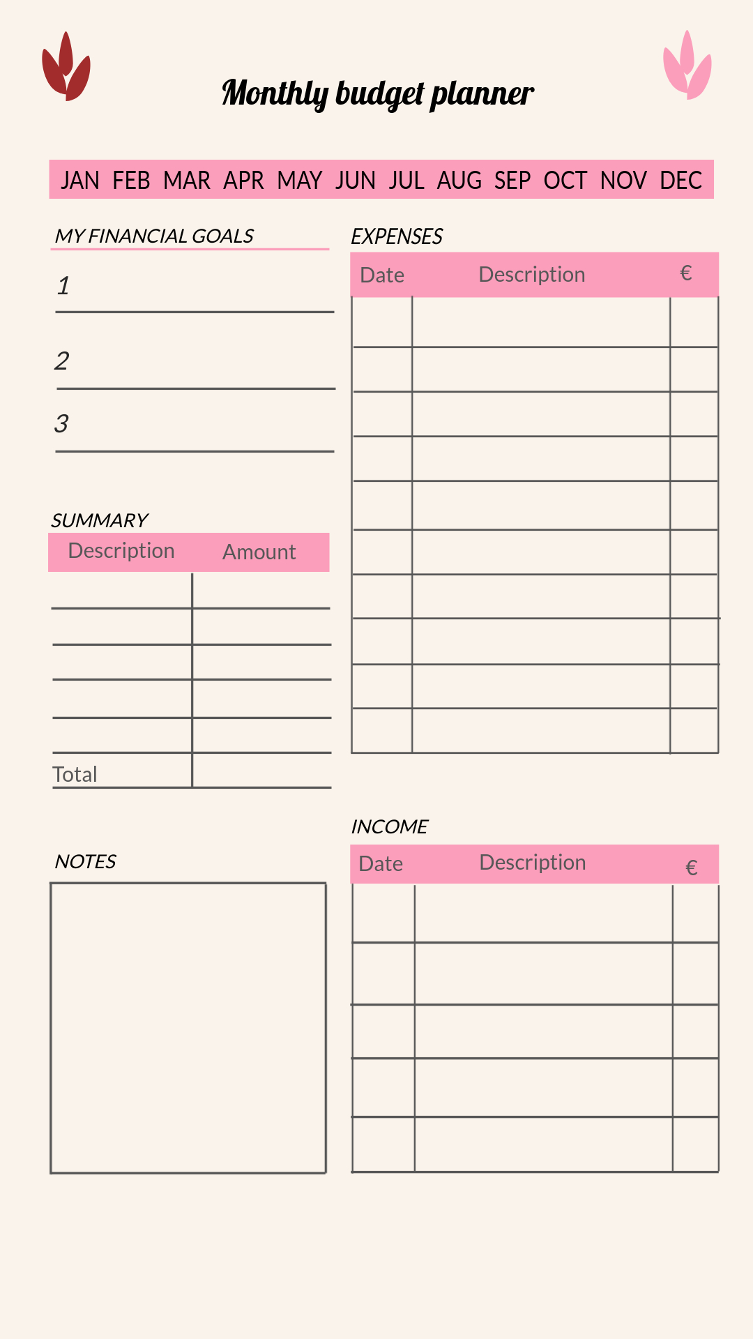 budget customizable Design expense finance financial Goals Graphic household Income management money Monthly organization personal planner savings spending template TrackerDescription: