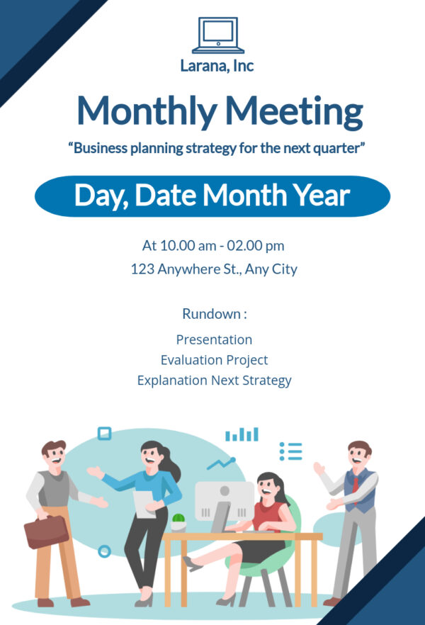 Dark Blue and White Simple Monthly Meeting Invitation Template