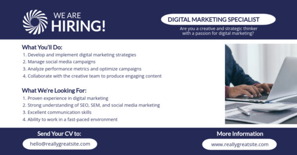 Navy and White Professional Digital Marketing Job Hiring Template