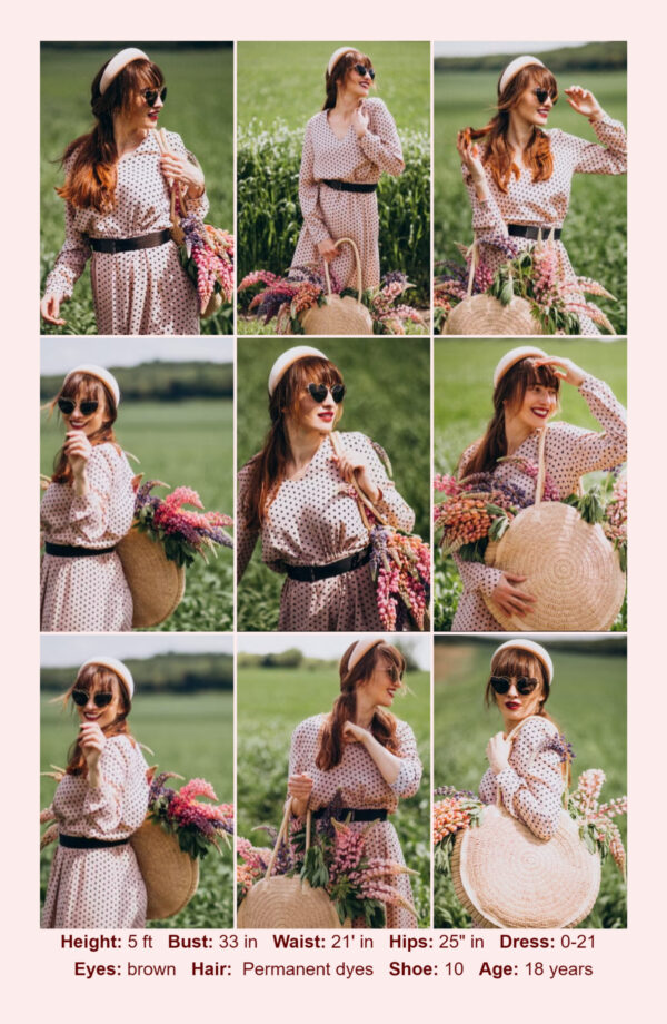The layout is thoughtfully designed to balance visual impact with essential information, including the model’s name, contact details, measurements, and any other pertinent information. With its professional typography and customizable elements, such as color schemes and layout options, this template offers flexibility to align with each model’s branding and style.