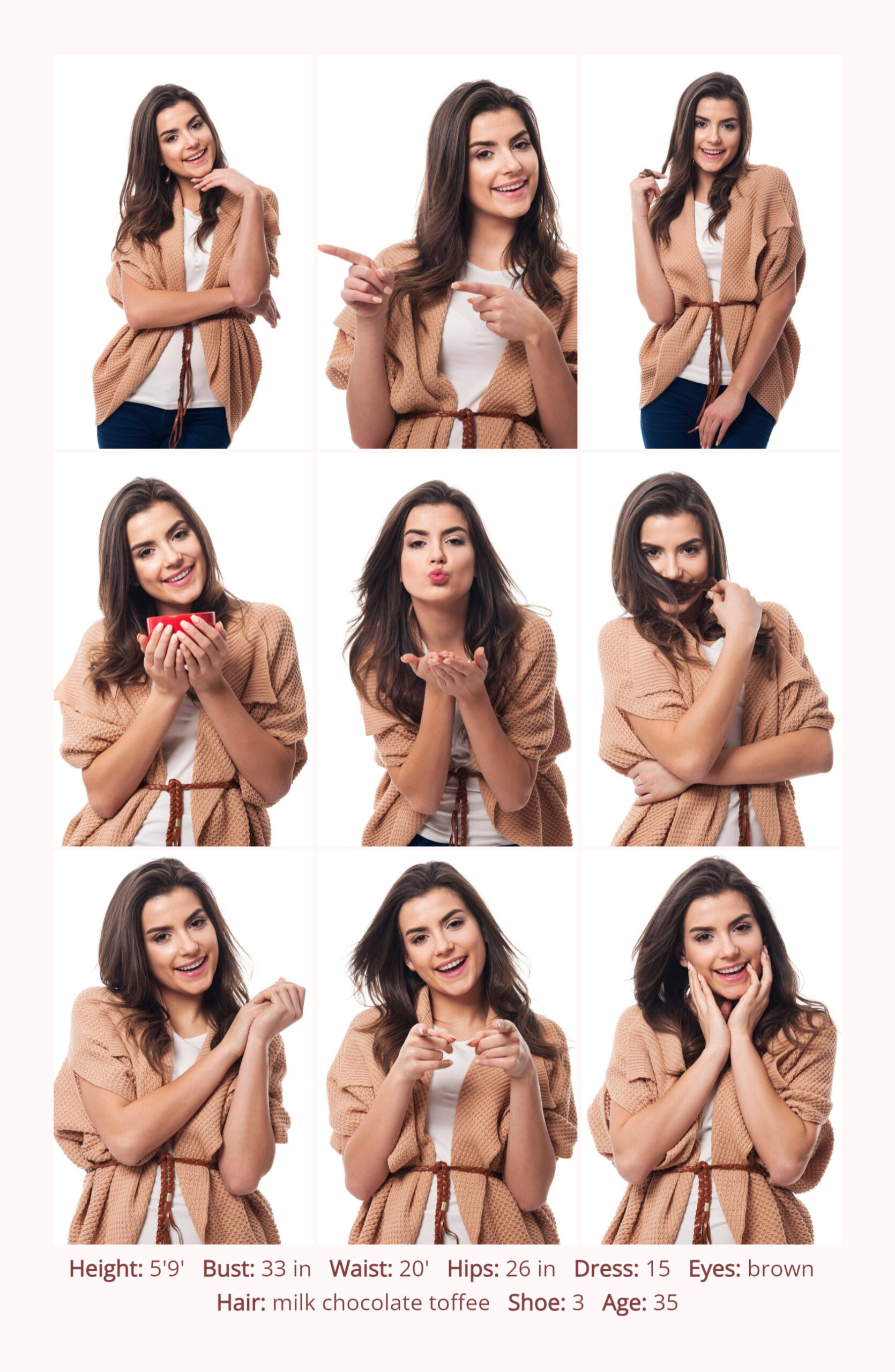 “Effortless Beauty” offers a cutting-edge customizable comp card template specifically designed for emerging female models. This meticulously crafted template is tailored to showcase the versatility, charm, and innate beauty of aspiring models in the most captivating manner possible. With a set of nine meticulously placed image slots, this template provides ample opportunity to display a diverse range of looks, expressions, and poses, allowing emerging talents to highlight their unique charm and appeal. Each image slot is strategically positioned within the layout to ensure maximum impact, drawing attention to the model’s features while maintaining a sense of elegance and sophistication.